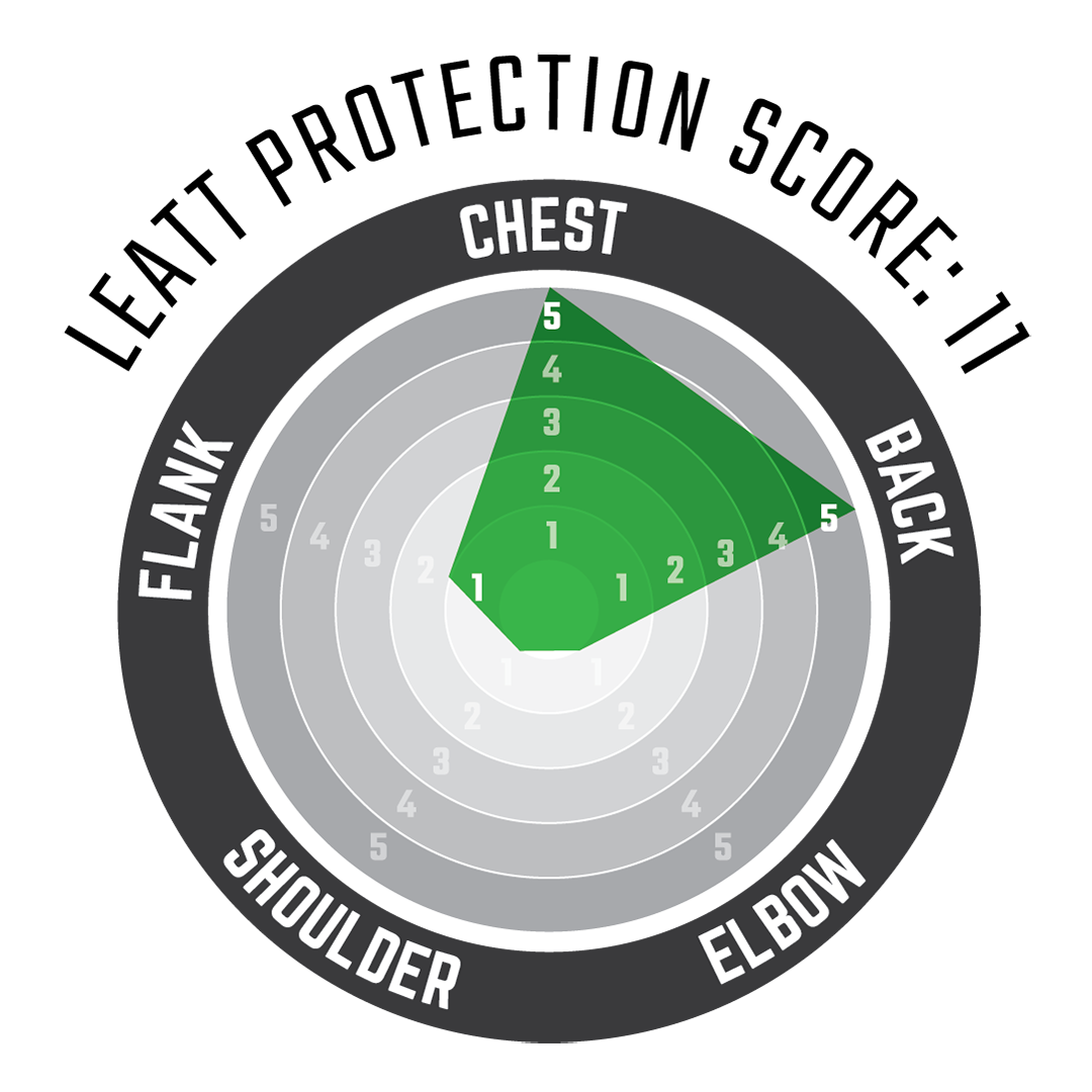 The body vest has an increased chest area in comparison to the previous model. The 3D design guarantees a perfect fit, and padded flanks provide additional side protection. The BraceOn system allows for a seamless neck brace fit.